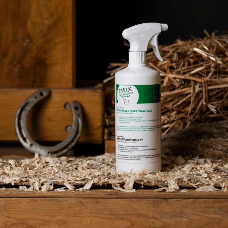 Bites from biting insects and ticks are a major problem, especially for horses with sensitive skin or even an allergic disease such as sweet itch. Together with leading doctors and researchers, we have developed our insect repellent to offer an optimal solution. The focus is on a particularly strong effect, while at the same time we have given great importance to high tolerance. Another special feature is the caring effect of provitamin B5, which makes our insect repellent suitable for horses with sensitive skin.
